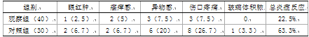 选取2012年3月份~2013年3月份来我院做眼科手术的患者70例,其中男性 33例,女性37例,年龄在27-90岁之间,平均年龄为65.2岁,其中做白内障摘除联合人工晶状体植入术的有42例,青光眼小梁切联合虹膜周边切除术的有8例,眼球穿通伤清创缝合术的有7例,虹膜离断修复术7例,前房穿刺冲洗术的有6例。两组患者性别,年龄,病程和病情均无统计学差异(P>0.05),具有可比性。