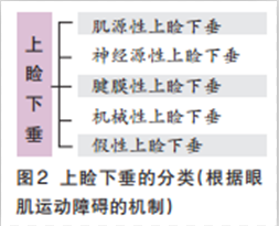 先天性上睑下垂依据发病特点分为:① 单纯性上睑下垂,约占77%;② 伴眼外肌麻痹,例如上直肌、下斜肌麻痹,约占12%,以神经核发育不良多见;③ 伴眼睑或其他部位先天异常,例如先天小睑裂综合征;④ Marcus-Gunn综合征(下颌顺目综合征)。