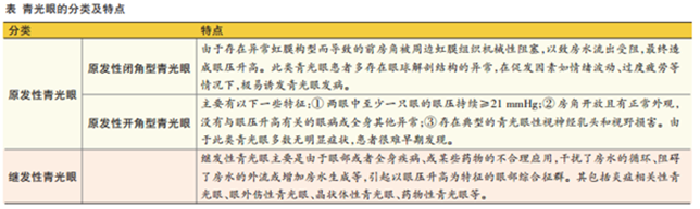 青光眼可分为原发性青光眼(开角型和闭角型)、继发性青光眼、先天性青光眼和混合性青光眼。各种类型的青光眼晚期均会导致失明。