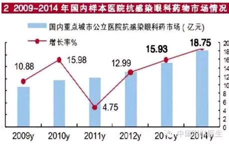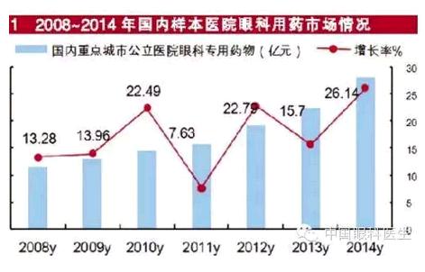 全球眼科药物市场是一个快速增长的领域,2014年全球领先500强药物中眼科药物市场规模超过100亿美元,同比上一年增长了15.49%,这主要是在雷尼珠单抗和阿柏西普强有力推动下形成的优势。