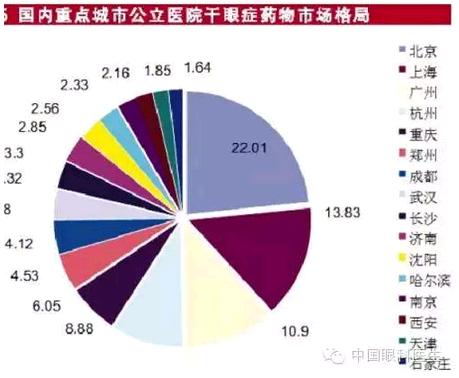 眼科治疗用药市场份额用量最大的是抗感染药、抗炎药单方及复方制剂,占据了约一半左右份额。抗青光眼制剂和缩瞳药占据15%。与此同时,散瞳药和睫状肌麻痹剂、抗充血剂、抗过敏药和黄斑变性药物在其中也占有一席之地。在眼科用药新配方、新释药技术的支持带动下,眼科用药逐渐进入中高端市场。