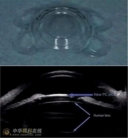 近期,有德国学者发现一种新型的PC pIOL可以直接或间接降低并发性白内障的发生及发展,同时以其更薄、更合适的弧度和直径设计获得研究者的青睐。新型 PC pIOL是由聚乙烯酸酯构成植入睫状沟的一片式可折叠晶状体,厚度介于0.1mm-0.3mm,光学直径6.0mm,总直径11.0mm-13.0mm(可根据拱高进行选择),度数范围介于-5.0D至-30.0D之间。值得一提的是,这种新型PC pIOL与晶状体接触的部位有开窗设计,增加了房水循环并利于晶状体的代谢(图1)。这一研究经历3年时间,共纳入高度近视患者16人(选择30只眼),平均年龄33± 9岁,并排除了病理性近视、术前角膜内皮计数(endothelial cell density, ECD)<2000个/mm2、术前中央前房<2.8mm及存在其他眼部疾病的患者。
