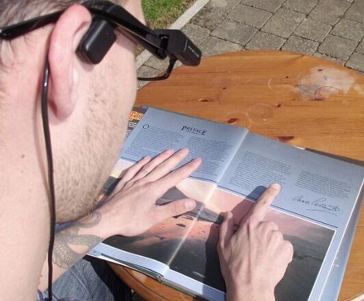 orcam myreader眼镜是一套基于摄像头的增强现实系统,通过一根细小的线缆与便携式电脑相连,它使用声频反馈传递用户无法看到视觉信息。微型照相机则通过磁铁跟镜框吸附在一起,可识别穿戴者指向的字和物体。在捕捉到文本或符号影像后,利用人工视觉软件通过耳机大声朗读出盲人正在阅读的单词,或者说出“看到的”东西。总之能够让盲人“通过听觉来看东西”,提供他们所需的机动性来满足日常生活中的需要。新款高科技眼镜具备用户学习功能,未来可实现面部识别、地点辨识、颜色识别等,真正帮助盲人更便利地生活。