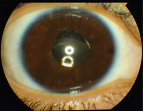 图 3 为白内障摘除术后角膜血染消失,人工晶体稳定