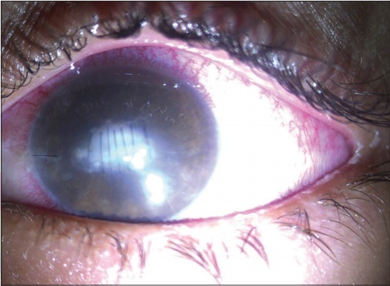 图 1 为术后 1d,缝合末端角膜浸润厚
