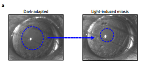 瞳孔反射在术后 6 个月和 10 个月,研究人员再次对大鼠进行电生理学和行为学上的分析,发现植入大鼠体内的人造视网膜依然有效。只不过,由于衰老,三组大鼠的视力都有了小幅的退步。