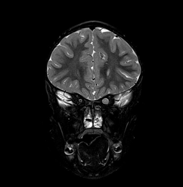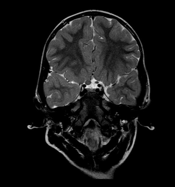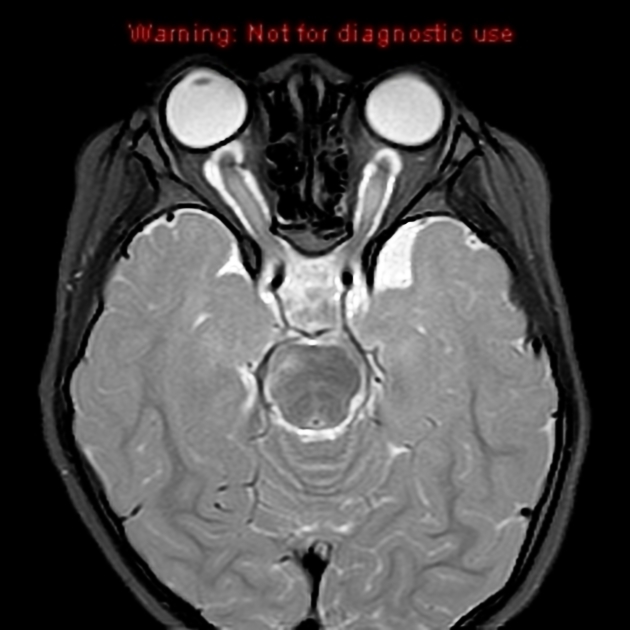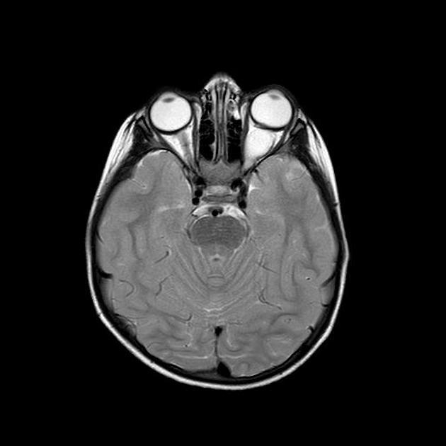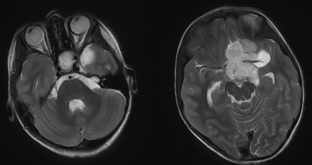 基本病史:6 岁女孩,既往体健,近期左眼视力明显下降,行颅脑 MRI 检查结果如下。