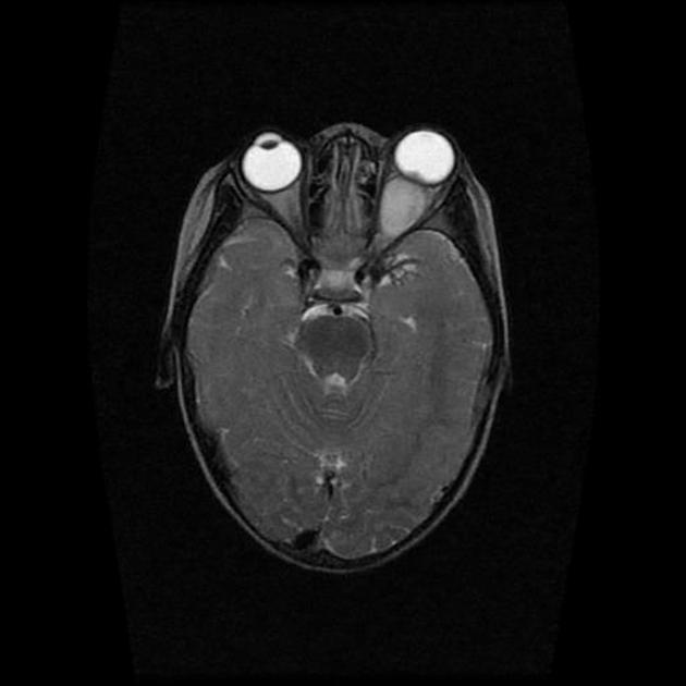 基本病史:3 岁男孩,左眼渐进性视力丧失,眼球前突,无神经纤维瘤家族史。