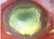 症状判断:眼睛红肿、畏光流泪、视力下降、脓性分泌物;角膜浸润及角膜溃疡形成。