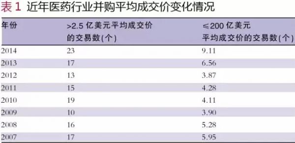 在这项分析中,研究者以不同方式计算并购的平均成交价,呈现其在过去几年的变化情况。但该分析仅包括了制药公司和生物技术公司的并购活动,医疗器械公司未考虑在内,同时也剔除了这些年来超大收购案带来的偏倚效果,如艾尔建、基因泰克、惠氏和先灵葆雅涉及的大额交易。