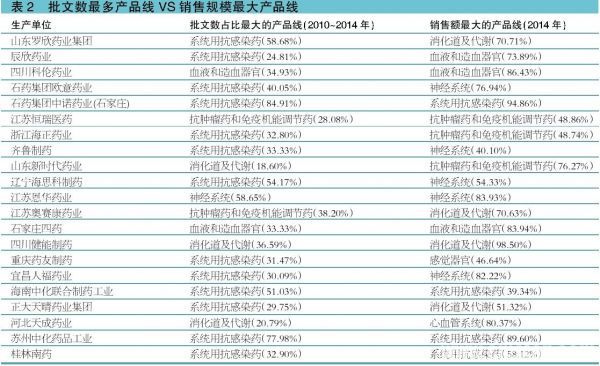 这种不一致所产生的原因,笔者认为有三:一是企业的战略调整,产品线规划随着战略的调整而调整。但是由于药品销售特别是医院终端市场的销售受目前招标、医院准入需要医院药事会批准等限制,药品在终端实现销售与药品上市有时间差。二是企业所拥有的药品批文数不等于企业实际在生产的药品批文数。部分药品批准文号由于各种因素如原料难以获取、终端价格高于成本价格实际上并没有生产,如有的集团企业掌握生产批文数400多件,实际上生产的批文数才100多件。三是某些药品的成功是偶然的。某些企业的研发策略完全是随机的,哪个热点就上哪个,待获批后才发现当年申报的批文好多企业在报,最终获批的生产企业数很多,产品同质化严重,竞争激烈;某些产品侥幸生产厂家数少,具有一定的临床需求,误打误撞就做起来了,该产品就成为该企业一枝独秀的主营产品。