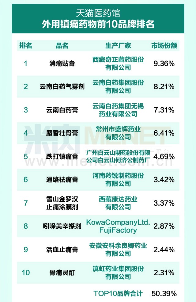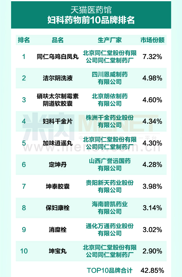 为大家解读天猫医药馆零售市场分析三,镇痛药物、妇科药物、清凉油药物及眼科药物的市场份额。