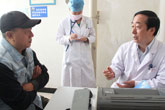 封国生在出诊时,对一位躺在床上的老人进行腹部按压检查,随后搀扶其起身,再次询问病情后开始写处方。但是,由于该中心无药,处方一改再改,从专门治疗结肠炎的柳氮磺胺吡啶改到常见的消化酶。