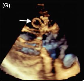 图 G 实时三维经食管超声心动图显示一柔软的圆形结构附着于二尖瓣后叶,活动性良好